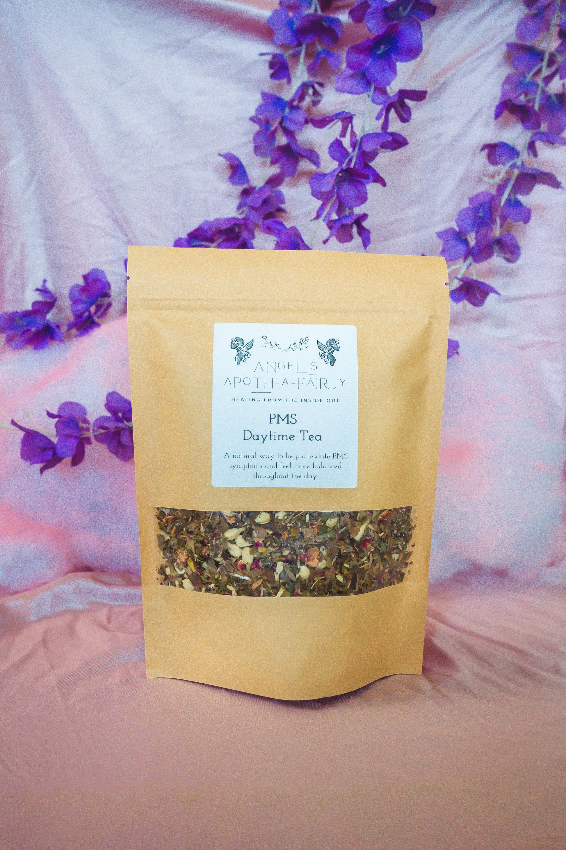 This beautifully crafted PMS daytime tea helps alleviate pain, cramping, bloating, and other PMS symptoms. It has anti-inflammatory properties which helps the uterus as it's trying to shed it's inner lining. This tea also helps you feel relaxed and balanced during the day.
